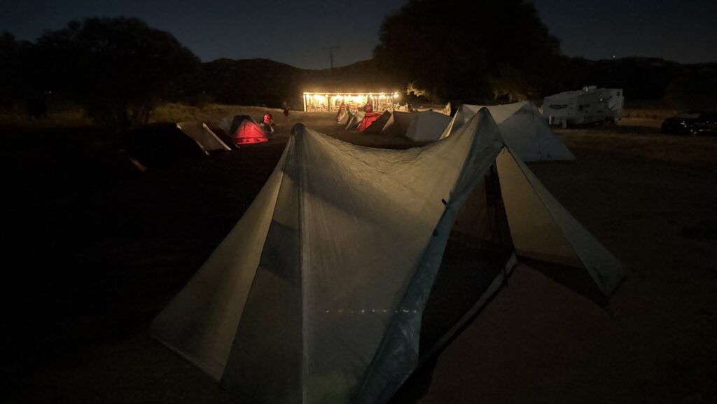 With my ninja reflexes, I dodge and weave past a large encampment of hikers. All sleeping and dreaming of sugar plum fairies.