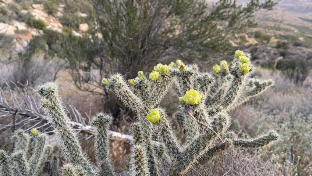 I can hear bees everywhere. The desert is in bloom and it shows. The flowering cacti are impressive and brightens everyone’s day.