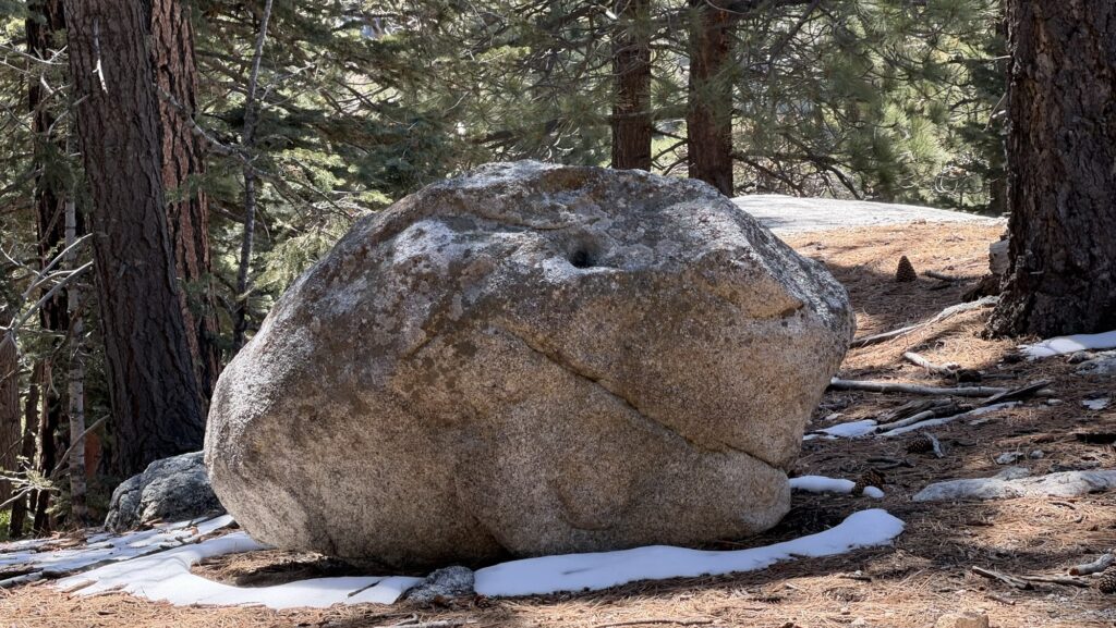I climbed another 1,000 feet to meet the junction to either continue the official PCT trail, or to go up to the San Jacinto peak. There were a few others there at the junction. My altitude sickness was kicking in. How did I know? I wanted to murder them all. The “grumbles” is a tell tale sign of altitude sickness. The cure? Going down. I chose not to summit San Jacinto. I went down. While the down was nice to have after all the up, it came with new ups. And downs. 1,000 feet here, 1,000 feet there. What surprised me was that those ups and downs were some of the most beautiful forest I’ve seen yet. HUGE pine trees. Boulders the size of cars. A small meadow or two. And oh my god, flat land.